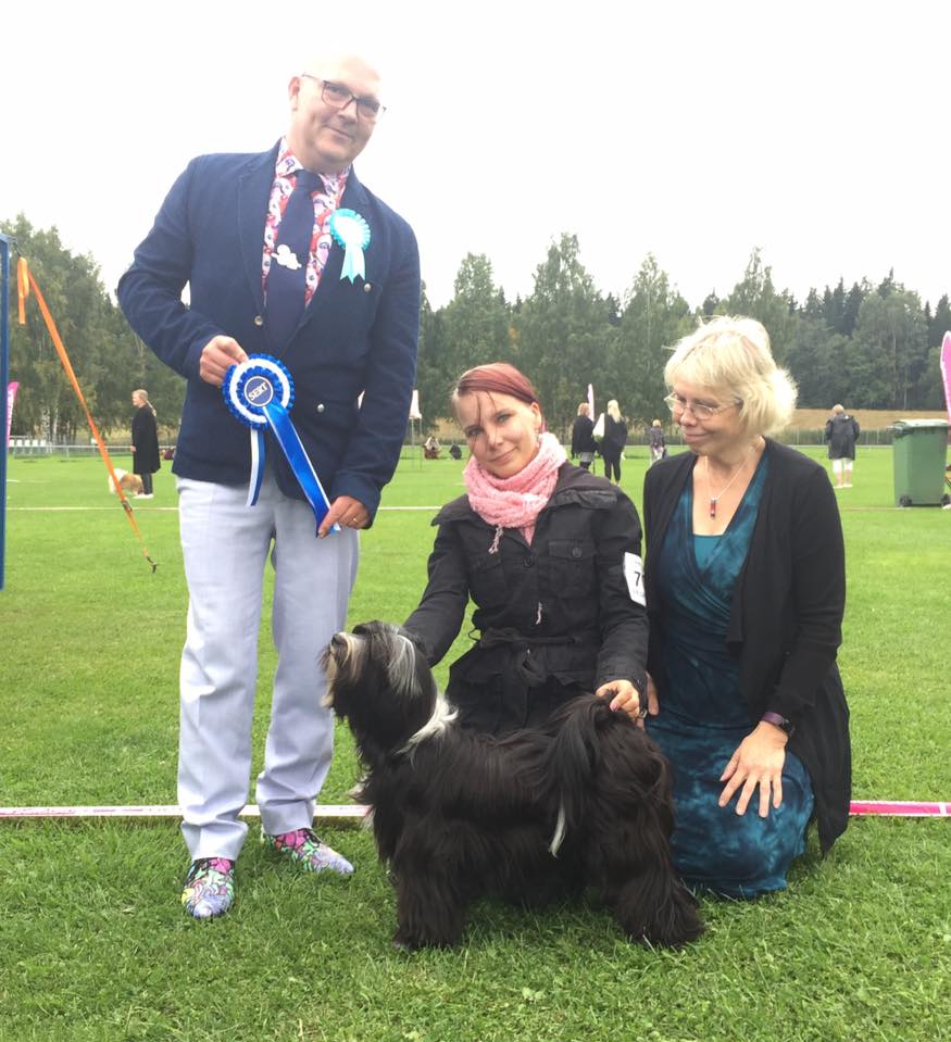 "2v maskuliininen nuorukainen, joka voisi olla rungoltaan hieman lyhyempi. Hyvä uroksen pää. Hyvät silmät ja purenta. Hyvä kaula ja eturinta, luusto ja tassut. Litteä häntä. Hyvä karvanlaatu. Liikkuu reippaasti, hieman veivaten edestä ja kinnerahtaasti takaa. Hyvä askelpituus. Miellyttävä käytös."